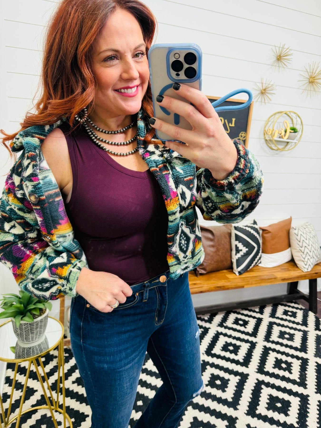 I love the color of this vest! It’s not bulky, it’s light and comfy. I love the denim touch added to it, it’s my new favorite go-to vest for fall/winter!!