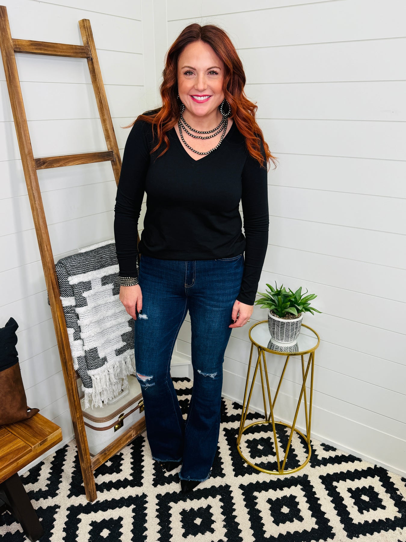 The YMI High Rise Flare Frayed Hem Jean combines style and comfort with its super high-rise fit that shapes and flatters your waist. Featuring a single-button closure and front zip, these jeans offer easy wear along with classic five-pocket functionality. The trendy flare silhouette with frayed hem adds a modern edge, while subtle distressing and whiskers provide a lived-in look. Complete with belt loops, these jeans adapt perfectly to your wardrobe, helping you feel confident and effortlessly stylish every day.