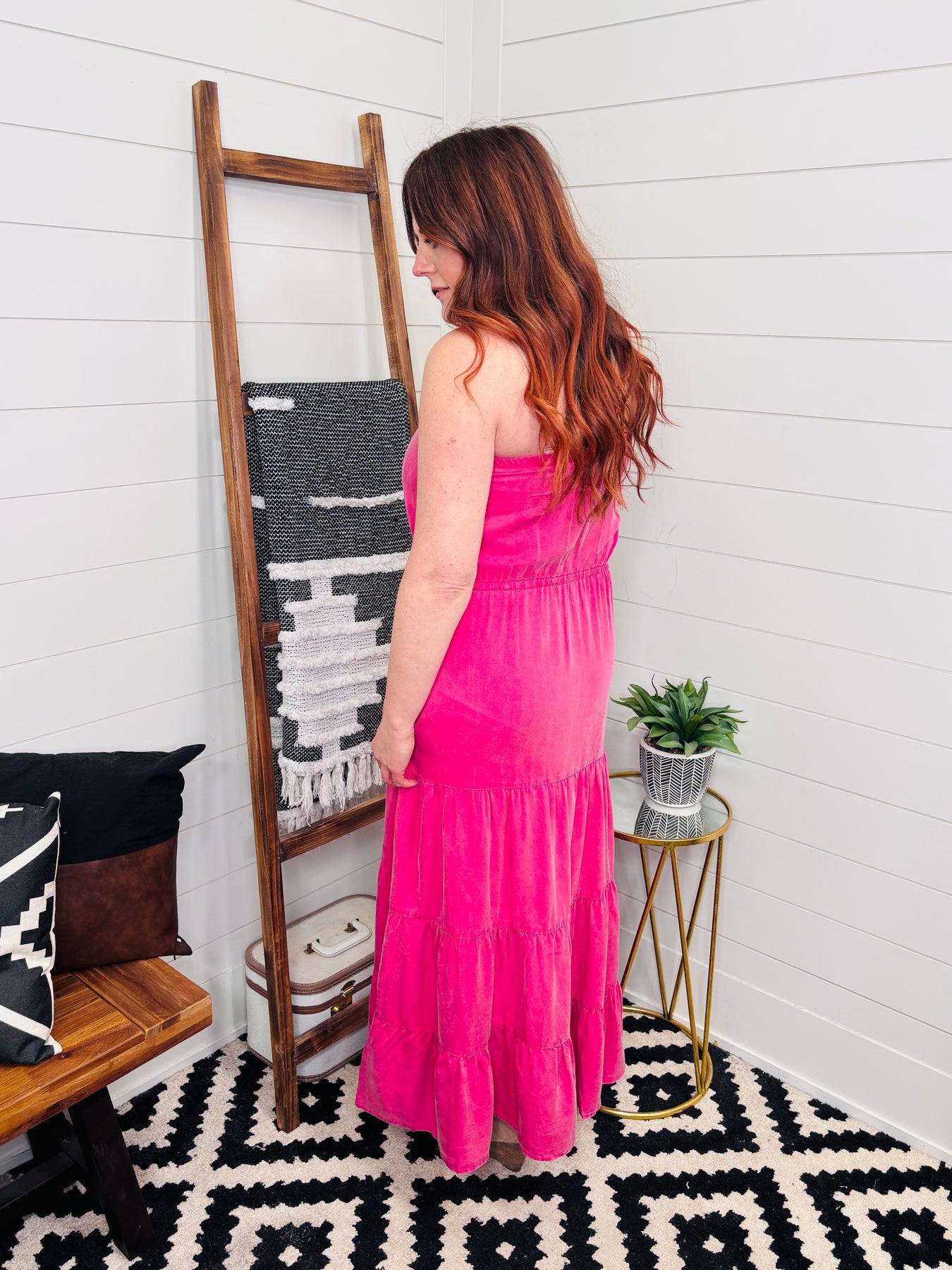 Embrace effortless boho style with this washed finish pink tube maxi dress. Crafted from luxurious 100% Tencel, it features a gathered relaxed fit that's perfect for spring and summer days. The tiered silhouette and functional pockets add movement and practicality to this versatile piece. True to size or size up for an even more flowing, comfortable fit. A wardrobe essential that transitions seamlessly from casual outings to laid-back gatherings.